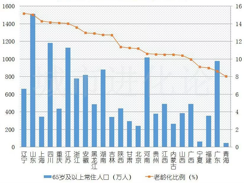 24省份2018年老龄化水平(上海为2017年数据)数据来源:各地统计局官网