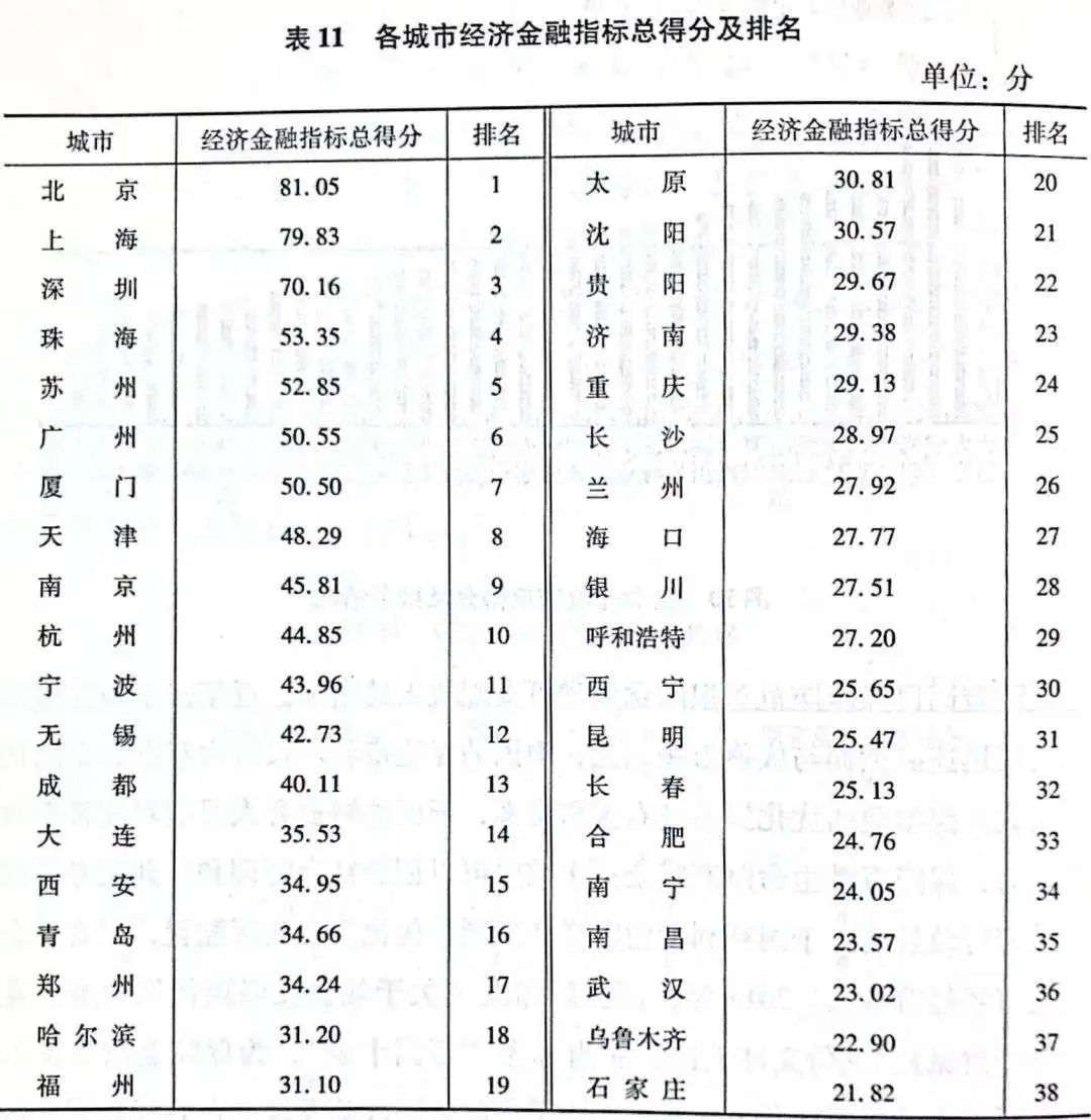 根据报告统计,经济金融水平排名靠前的城市基本上位于东部沿海地区,其中,北京、上海、广州、深圳四座一线城市均位于前十。