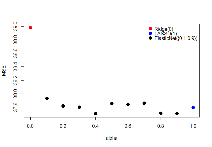 legend('topright',c('Ridge(0)','LASSO(1)','ElasticNet({0.1-0.9})'),