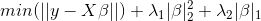 弹性网络回归可以克服这些不足,它在LASSO回归的惩罚项中加入回归系数的L2范数,使得损失函数严格凸,保证目标函数有唯一最优解。因此,弹性网络回归的目标函数为: