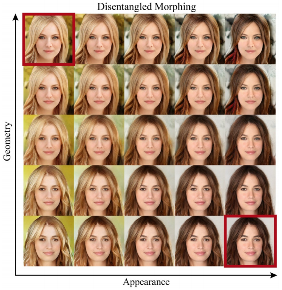 DeepFaceEditing 采用局部到全局的方法,将人脸的几何特征(Geometry)和外观特征(Appearance)进行解耦(Disentanglement),能分别对真实图像的几何细节和外观特征进行编辑,这是该方法行之有效的原因。