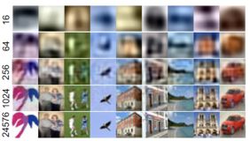 当然,哈希编码的最大缺点就是损失了大量原始信息从而降低检索精度。因此,自哈希编码提出以来,人们不断探寻可以提高哈希编码精度的方法。但Antonio Torralba等人早在2008年就提出:以图像压缩为例,我们可以使用少量位数表示图像信息而不影响图像识别的准确率(如图1.1)。因此,哈希方法是可以在保证正确率的前提下减少检索时间的,如今哈希编码被广泛应用在各个领域。