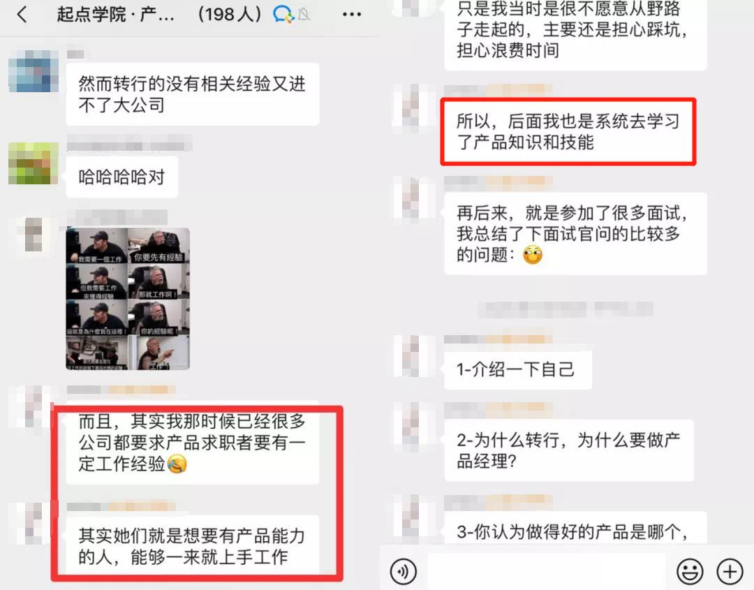 在我们课程顾问老师的群里就有学员分享了她0产品经验转岗的坎坷之路: