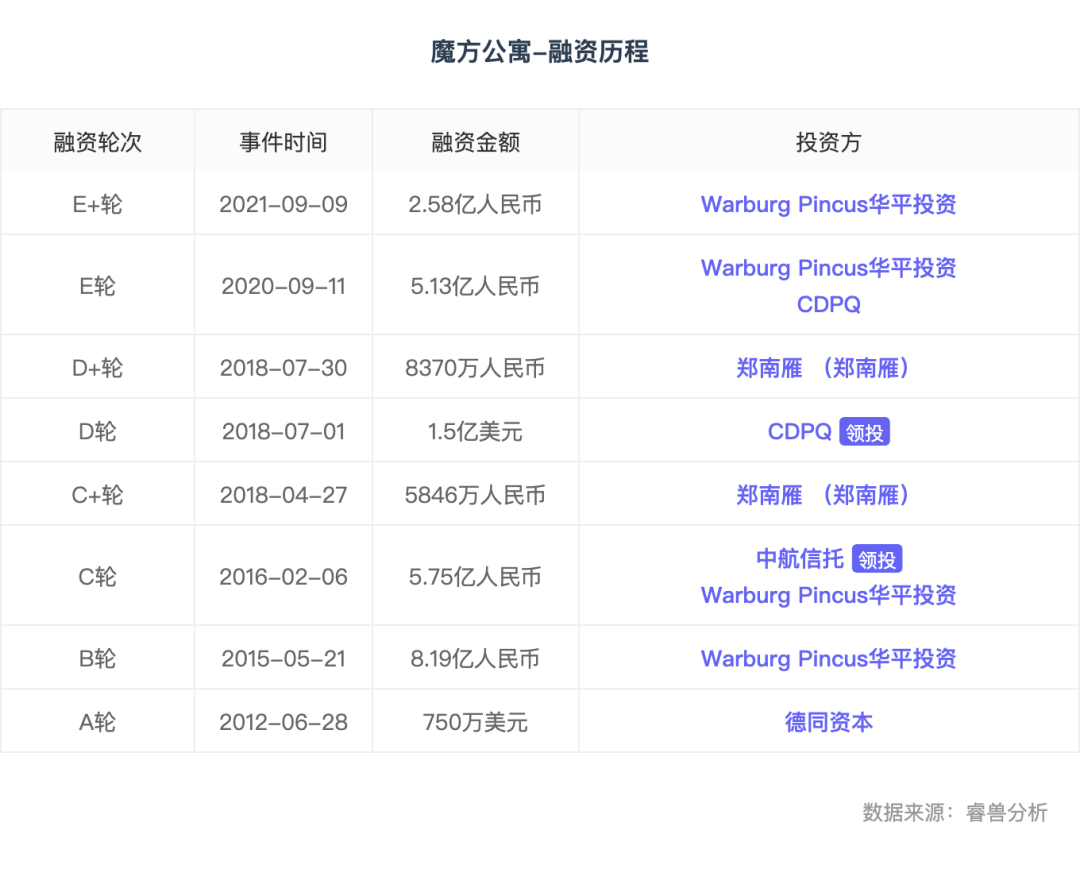 招股书显示,魔方公寓自2012年起,共经历8轮融资。