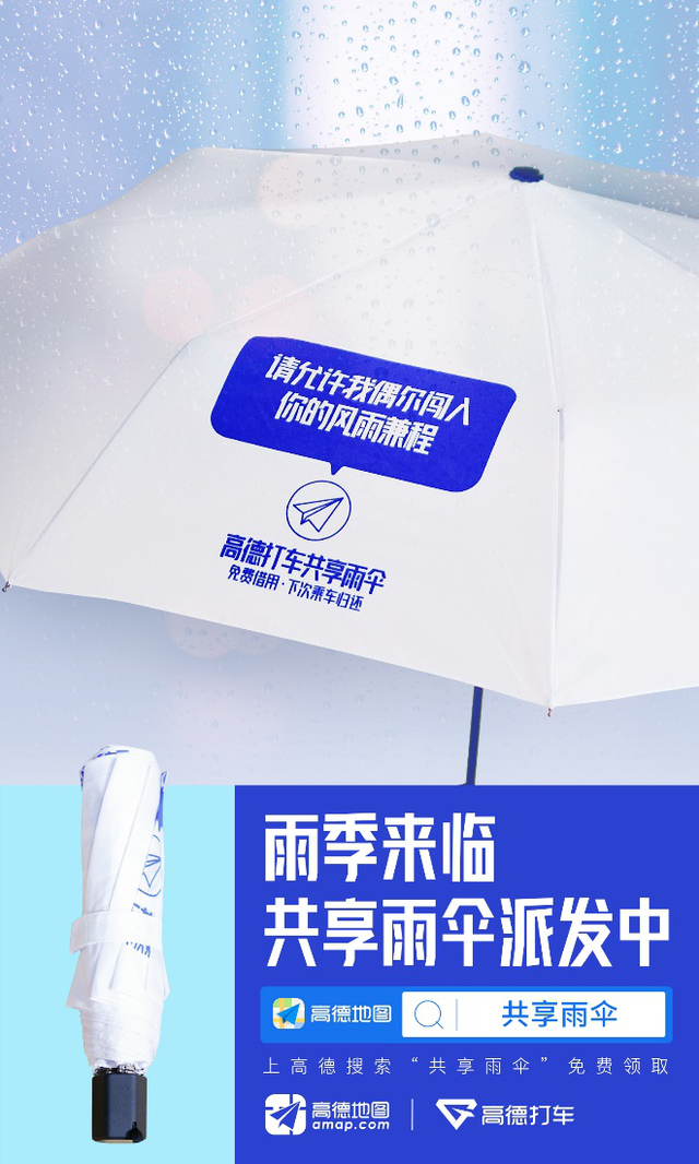 36氪获悉,高德打车宣布上线共享雨伞,乘客雨天乘坐放置共享雨伞的网约车时,可免费借用。据官方介绍,“共享雨伞”计划一期覆盖十个城市,每个城市一个出行平台,共计投放了1000辆网约车,包括北京的AA出行,上海、杭州、成都、苏州的携华出行,广州的全民用车,深圳的双创打车,重庆的国泰出行,长沙的快客出行,以及武汉的风韵出行。