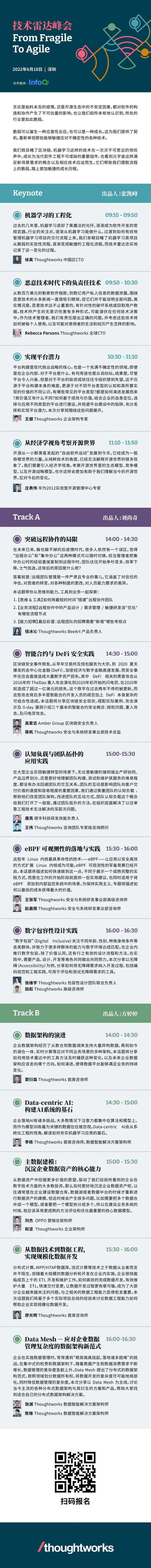 技术雷达峰会是 Thoughtworks 围绕技术雷达主办的一场线下技术互动和分享活动,本次大会于 2022 年 6 月 18 日(星期六)于深圳万怡酒店举行,并特地增加了线上形式,将有多位重磅嘉宾跟大家分享深度的技术洞察和趋势预测。从现在开始,通过 InfoQ 报名,完成审核后,即可免费领取大会门票!