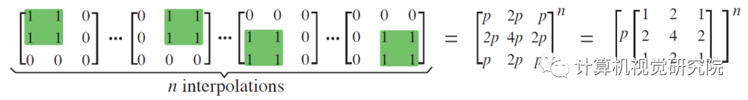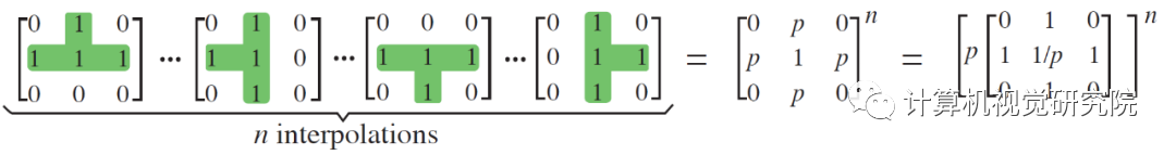 图 3 展示了该研究设计的八种卷积核模式,通过 n 次插值,图 3(上)能够得到高斯滤波器,图 3(下)能够得到增强型拉普拉斯高斯滤波器。其中 n 代表神经根网络层数,系数 p 为任意位置 1 出现的概率,在正则化运算后没有实际意义。