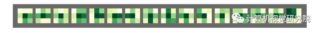 图 1. ImageNet 数据集上 VGG-16 第三卷积层中随机选择的卷积核的热力图。每个内核中的权重值都经过归一化处理,深色表示该处为较高的绝对值。