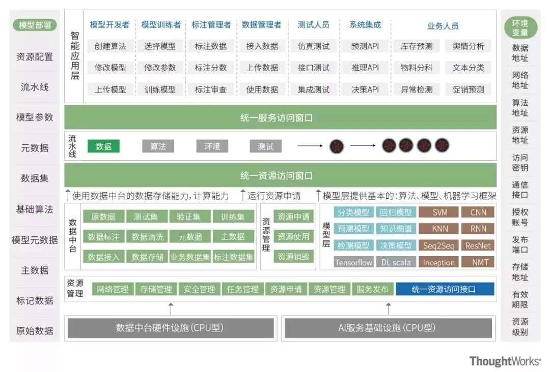 基础设施:对CPU做虚拟化的技术已经相对成熟,但是智能服务依赖的更多的是GPU,那么GPU如何做虚拟化,算法模型训练和数据是否需要共同使用相同的机器,还是集群相互隔离,都是需要在一开始设计好的。