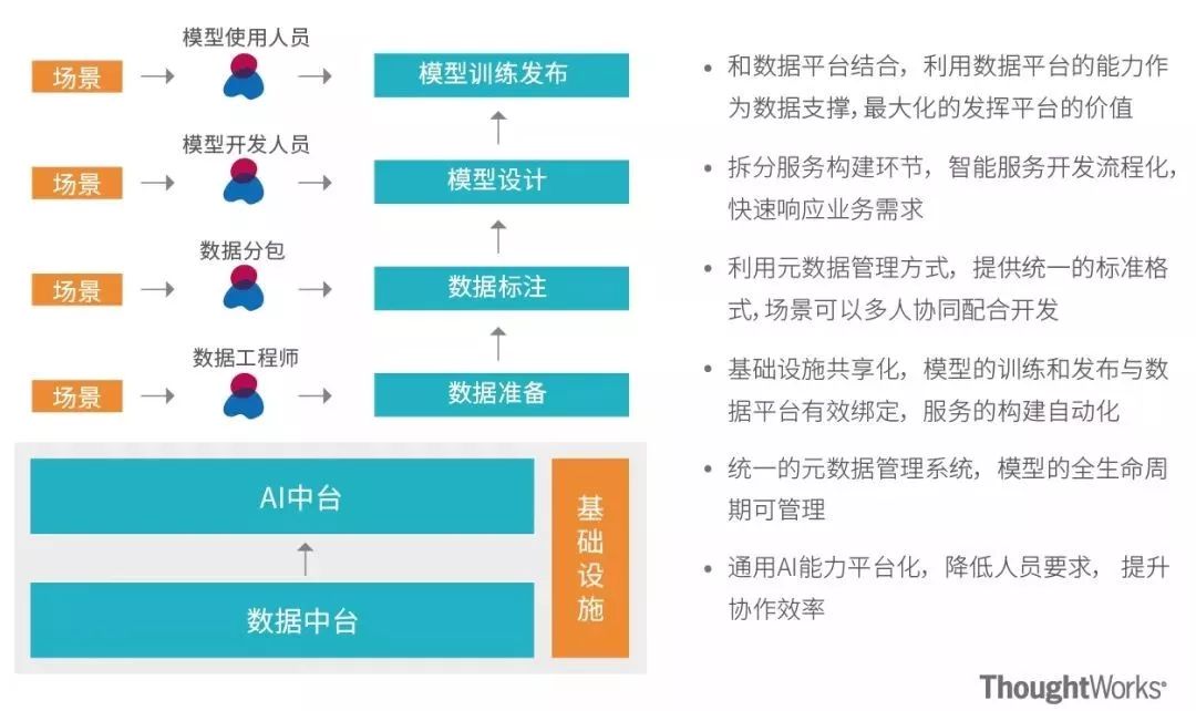 从AI中台落地实施的方式来看,AI中台可以是数据中台的进一步延伸,从数据中台一步一步演进过去。