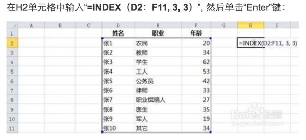 =Index(查找的区域,区域内第几行,区域内第几列)