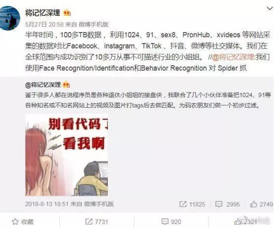 第二件事是,微博用户@将记忆深埋表示,自己通过半年时间,比对了国内外色情网站和社交媒体的数据,在全球范围内成功识别了 10 多万从事不可描述行业的小姐姐。查询系统可以对美颜、 Deepfake 换脸等有效对抗,并加上步态分析、声纹识别和其他身体特征,识别率达到 99%。