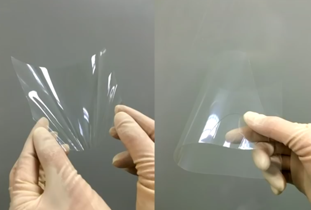 就拿盖板材料来说吧,一开始各家都只能用CPI膜,也就是无色聚酰亚胺。在当时的条件下,这种类似塑料的材质确实可弯折,不过比较厚,有220μ,而且平整度不太好,透光率也比较渣,在87%-90%之间。虽然名字里带着“无色”,可实际上却有淡淡的黄色,所以在使用过程中观感并不是那么好。