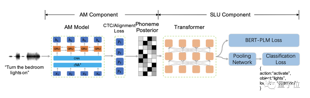 聂再清解释,比如输入“liangzhu”这个语音信号,通过声学模型,就可以计算出一个音素后验矩阵。在这个时候,模型并不需要马上判断“liangzhu”到底是指音乐里的“梁祝”,还是建筑里的“梁柱”,而是可以在音素后验的基础上去做意图分类、语义分类。
