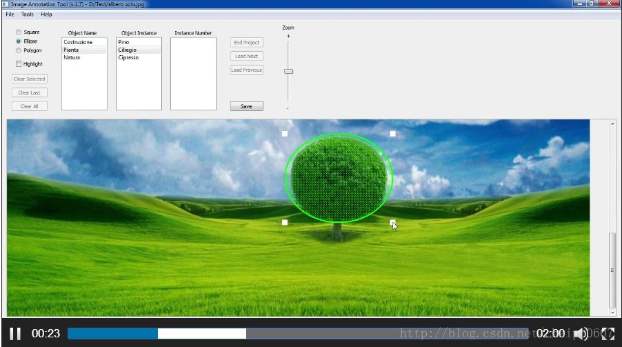 比较特别的是,它可以做视频的标注,比如一个25fps的视频,只需要隔100帧左右手动标注一下物体的位置,最后在整个视频中就能有比较好的效果。这依赖于软件集成的opencv的追踪算法。