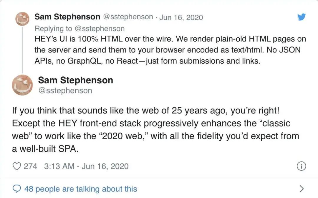 伴随着 Phoenix Liveview 或 hey.com 等项目最近提出的“纯 HTML”方法,似乎服务端渲染(SSR)又一次成为了人们关注的焦点。