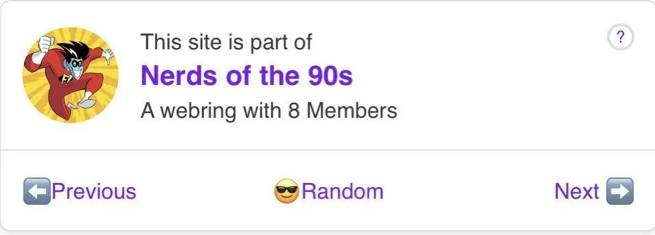 在 Web 行业的早期,人们经常加入网盟来宣传自己的网站。要成为一个网盟的成员,你必须在自己的网站上嵌入一个小部件,其中包含“前进”“后退”和“随机”按钮。这些按钮将链接到网盟中的其他站点。顺便说一句:如果你想托管自己的网盟,我为你制作了这个免费的入门工具包(https://mxb.dev/blog/webring-kit/)。