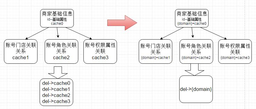 如图13,按旧的方案,当cache0发送变化时,为了保持信息的实时更新,需要手动删除cache1、cache2、cache3等相关处的缓存数据。增加域缓存概念,cache0、cache1、cache2、cache3是以账号ID为基础,相互存在影响约束的集合体,我们作为一个域集合,增加域缓存处理,当cache0发送变化时,整体的账号ID domain域已发生更新,自动影响cache1、cache2、cache3等处的缓存数据。将相关联逻辑缓存统一化,有效提升代码可读性,同时更好服务业务,账号重点信息能够实时变更刷新,相关服务响应速度提升。