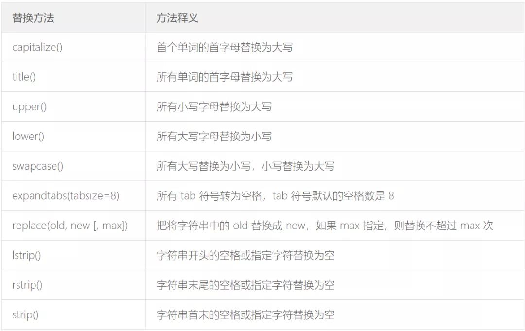 以上这些方法都很明了,使用也简单,建议你亲自试验一下。这里只说说 strip() 方法,它比较常用,可以去除字符串前后的空格,不仅如此,它还可以删除首末位置的指定的字符。