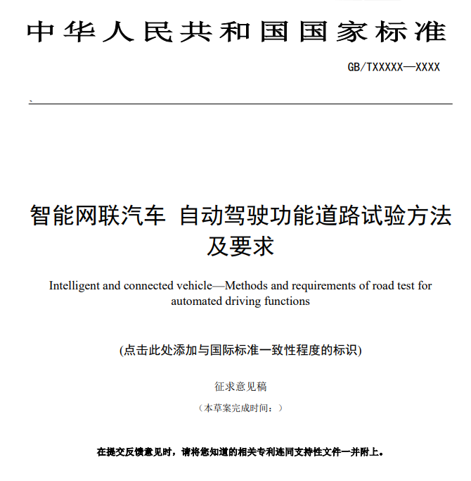 本文件规定了智能网联汽车自动驾驶功能的道路试验条件、试验方法及要求。本文件适用于具备自动驾驶功能的M类、N类、O类汽车,其他类型车辆可参照执行。