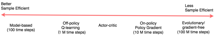 像使用Policy Gradients这样的model-free强化学习技术可以是暴力解决方案,最终发现正确行为并将其渗透到策略中。Policy Gradients实际上必须接受积极的反馈,并经常接受它,以便最终将Policy Gradients参数给予高回报的动作。