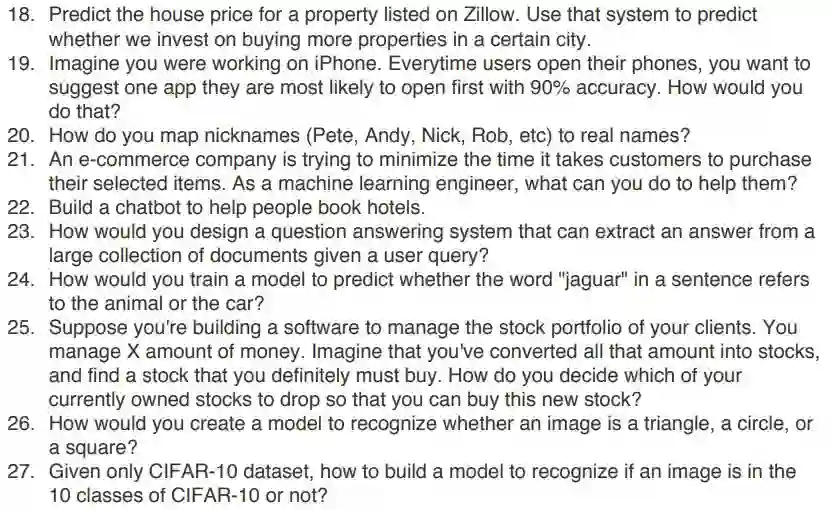 最后,还有 27 个练习题可供上手尝试。习题的答案将在《Machine Learning Interviews》一书中给出。
