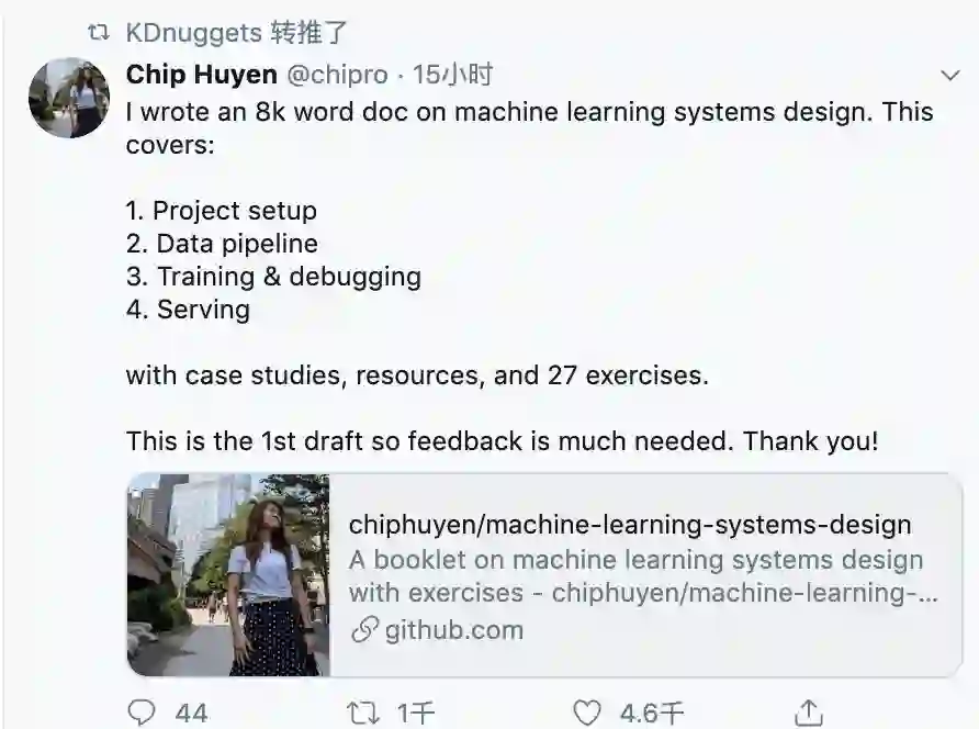 • 项目地址:https://github.com/chiphuyen/machine-learning-systems-design