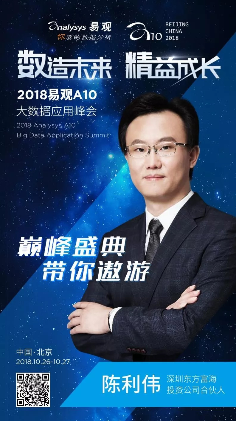 2018年10月26-27日,易观A10大数据应用峰会将于北京召开,东方富海合伙人陈利伟将出席峰会现场,为我们全面解析大数据下企业的商业机遇。