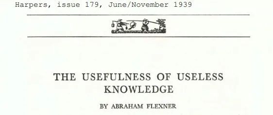 Flexner 在文章中写道,“本文我将论述的是,对这些‘无用’满足感的追求究竟成就了多少做梦也想象不到的‘用处’。”Flexner 在文章中引用了詹姆斯·克拉克·麦克斯韦(James Clerk Maxwell)在赫兹研究所(Heinrich Hertz)的例子。他们对电磁学的研究,纯粹是源自于他们的兴趣。当然,这些人的工作为其他人奠定了不可或缺的基础,使无线通信成为可能。