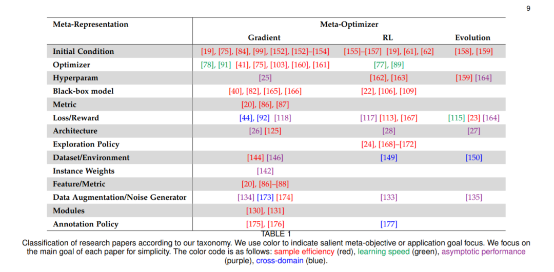 在文献中可以找到许多关于元学习的不同观点。特别是由于不同的社区对这个术语的使用略有不同,所以很难定义它。与我们[29]相关的观点认为,元学习是管理“没有免费午餐”定理[30]的工具,并通过搜索最适合给定问题或问题族的算法(归纳偏差)来改进泛化。然而,从广义上来说,这个定义可以包括迁移、多任务、特征选择和模型集成学习,这些在今天通常不被认为是元学习。另一个关于元学习[31]的观点广泛地涵盖了基于数据集特性的算法选择和配置技术,并且很难与自动机器学习(AutoML)[32]区分开来。在这篇论文中,我们关注当代的神经网络元学习。我们将其理解为算法或归纳偏差搜索,但重点是通过端到端学习明确定义的目标函数(如交叉熵损失、准确性或速度)来实现的。