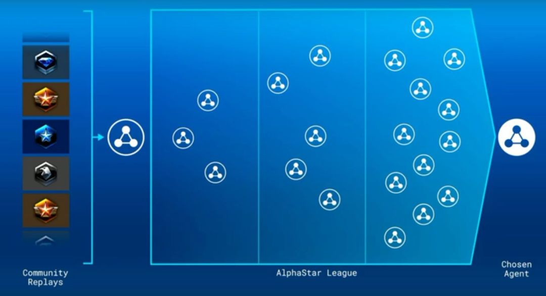 AlphaStar在游戏中的专业能力主要来自DeepMind称之为AlphaStar联盟的深入培训计划。DeepMind通过重播大量的人类游戏录像,并基于这一数据训练神经网络。由人类数据组成的代理分叉创建新的对手,并且这些竞争者在一系列比赛中相互匹配。同时,鼓励原始数据的那些分支去学习特殊技能,并掌握游戏的不同部分以创造独特的游戏体验。