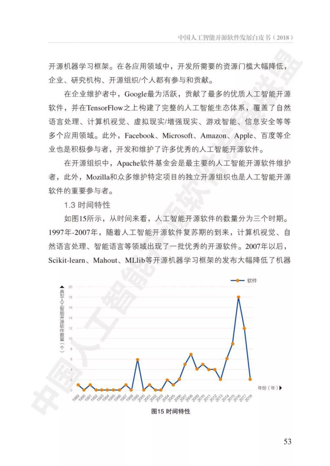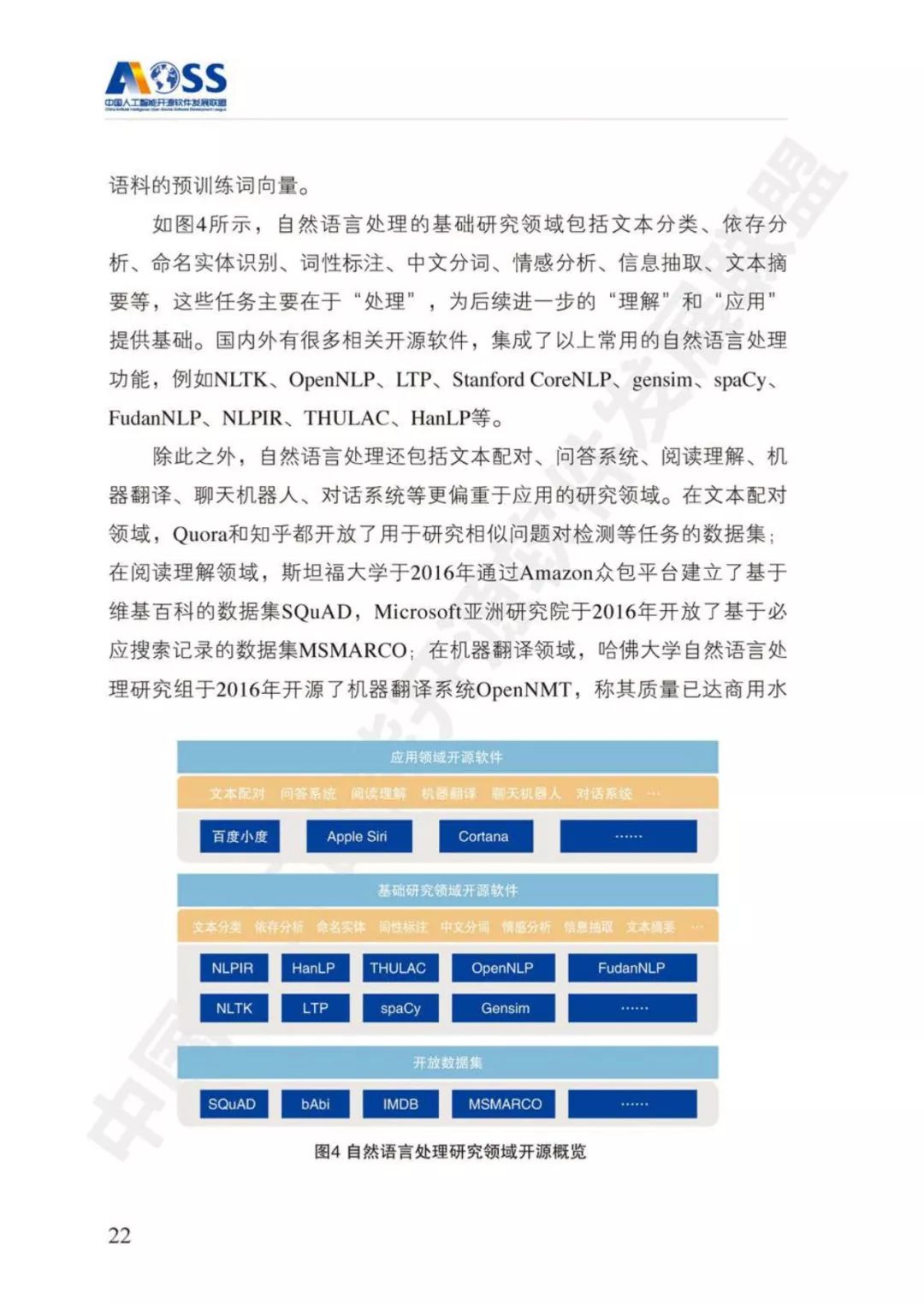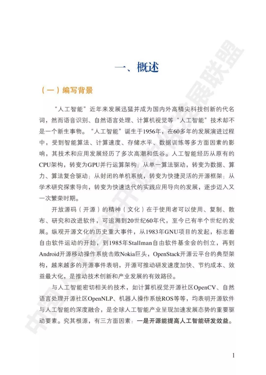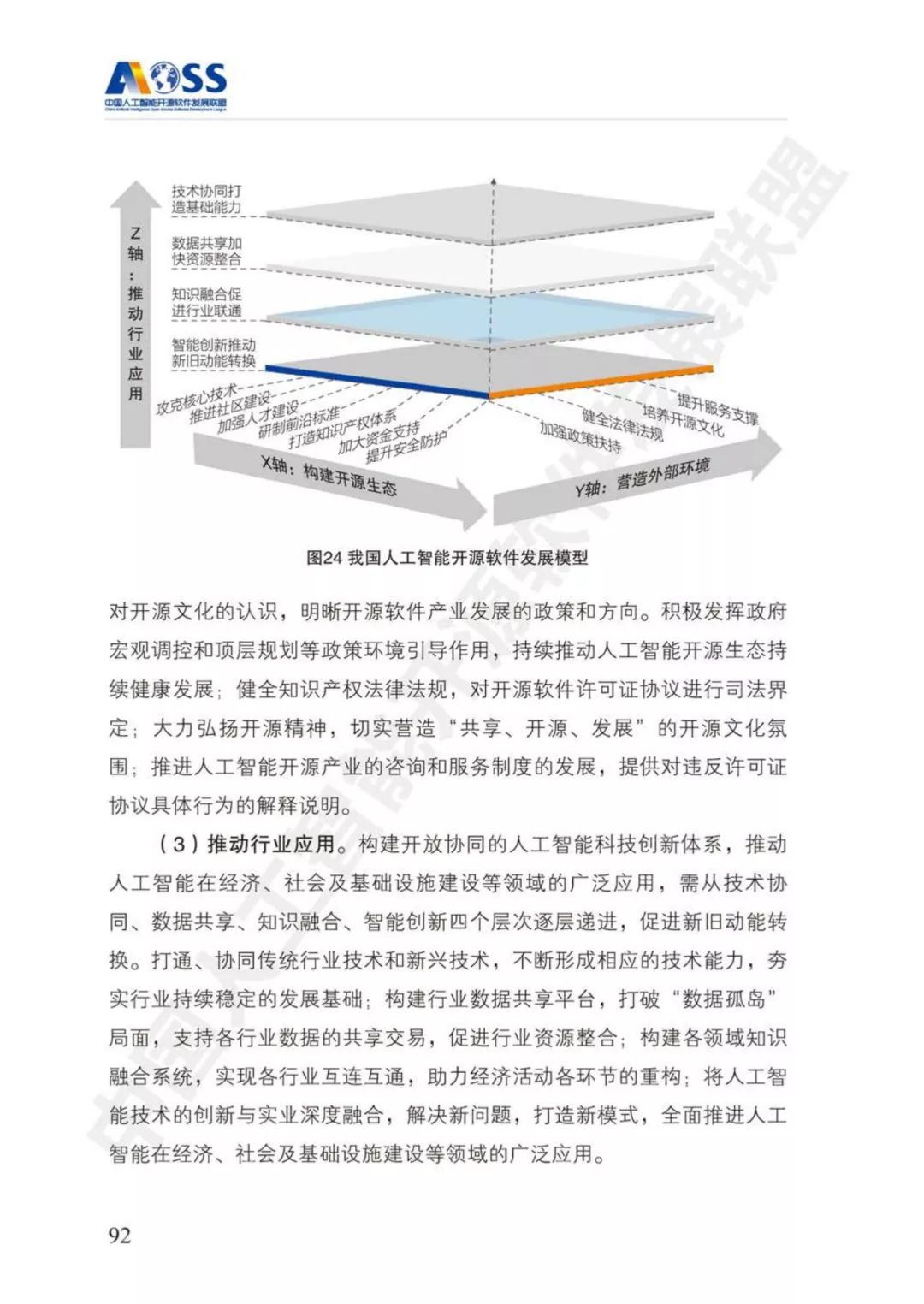 为推动人工智能开源软件快速而健康的发展,中国人工智能开源软件发展联盟召集中国电子技术标准化研究院、上海软件中心、北京大学、微众银行、蚂蚁金服、京东等企事业单位,研究梳理人工智能开源软件发展现状,分析人工智能开源软件生态,提出我国人工智能开源软件发展建议,并提炼我国人工智能开源软件应用案例,编撰形成了《中国人工智能开源软件发展白皮书(2018)》,已作为联盟的一项重要成果发布。