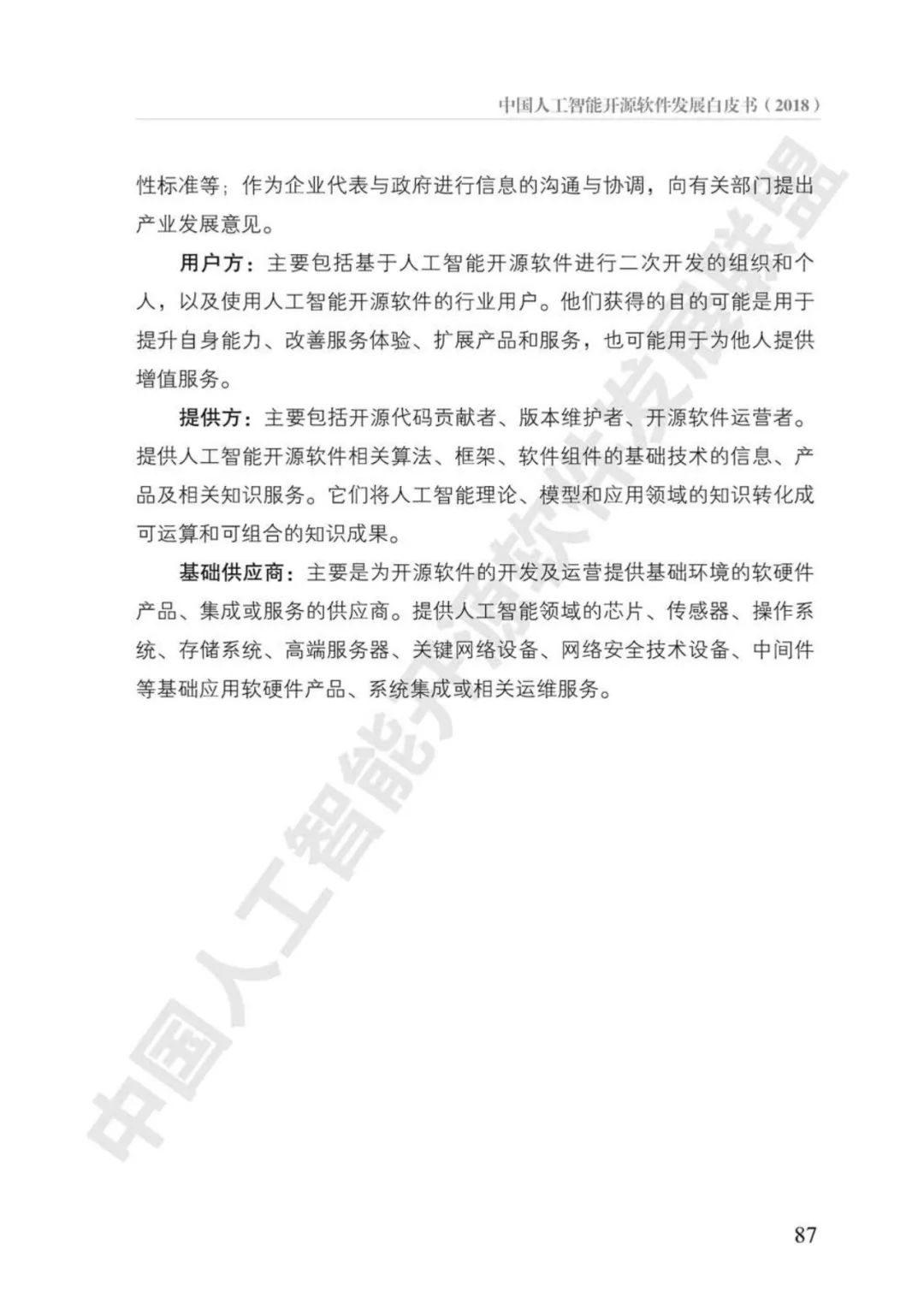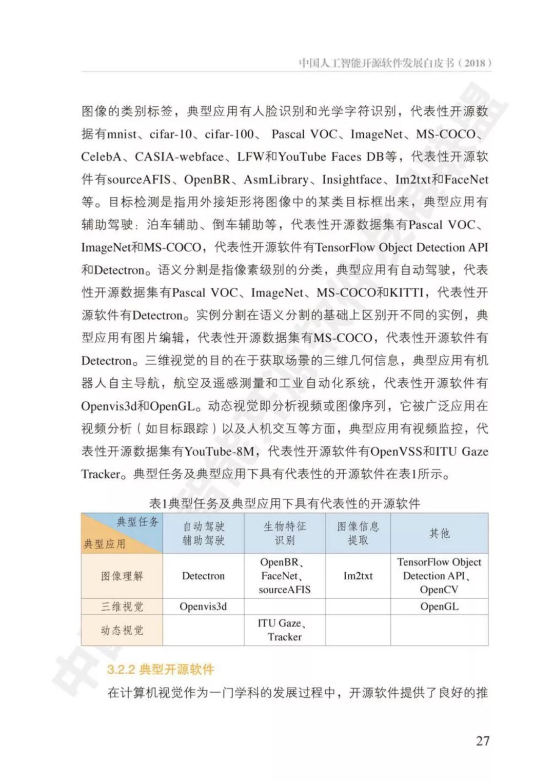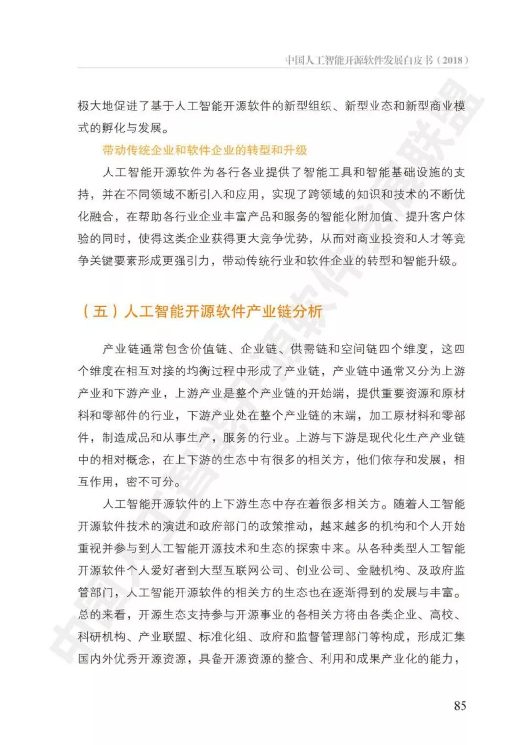 为推动人工智能开源软件快速而健康的发展,中国人工智能开源软件发展联盟召集中国电子技术标准化研究院、上海软件中心、北京大学、微众银行、蚂蚁金服、京东等企事业单位,研究梳理人工智能开源软件发展现状,分析人工智能开源软件生态,提出我国人工智能开源软件发展建议,并提炼我国人工智能开源软件应用案例,编撰形成了《中国人工智能开源软件发展白皮书(2018)》,已作为联盟的一项重要成果发布。