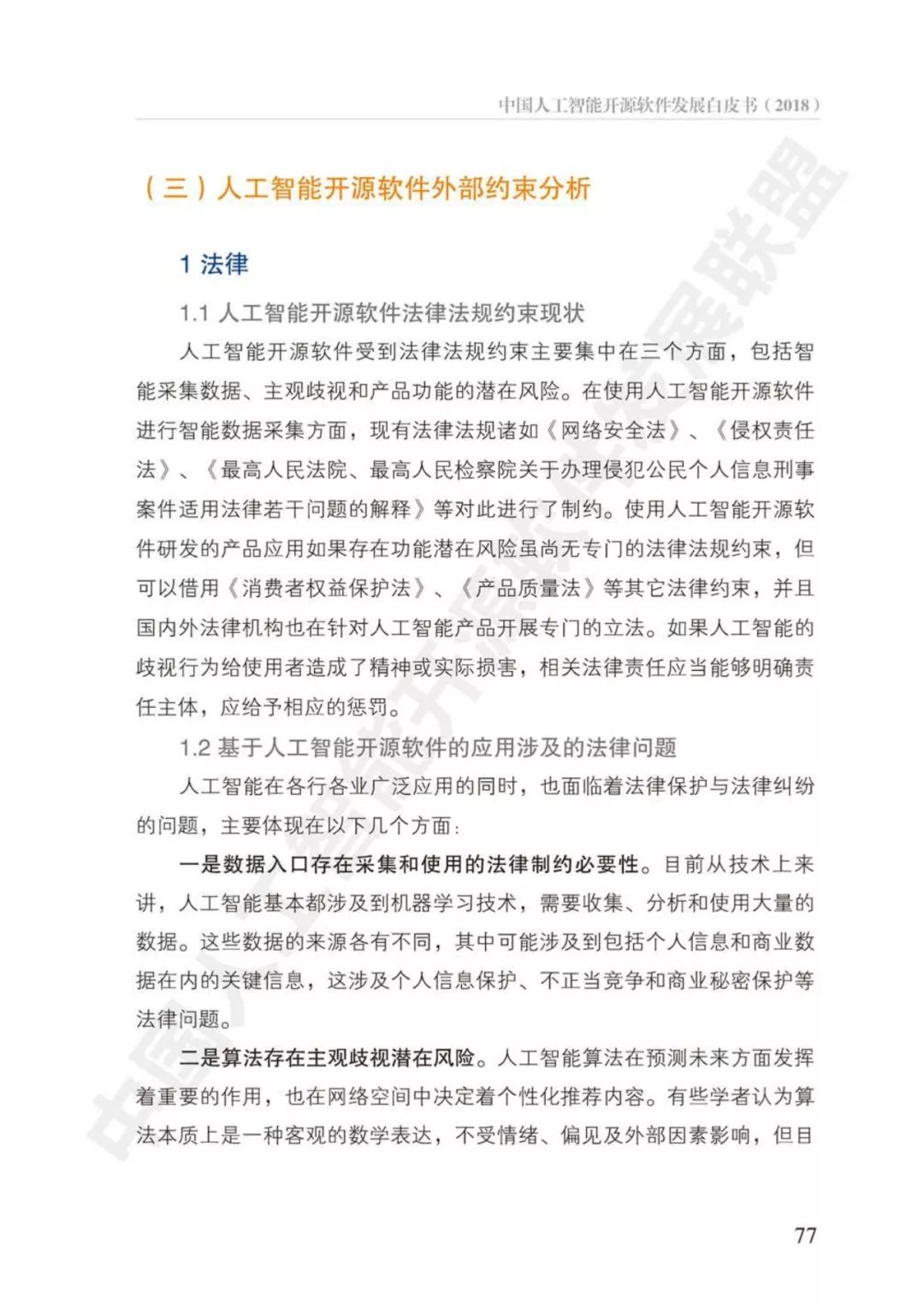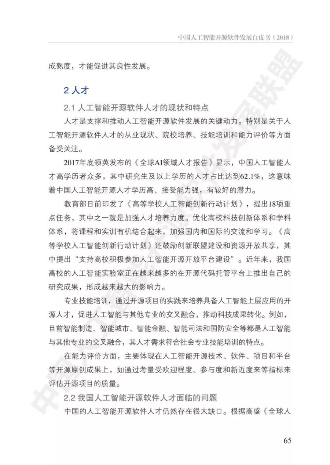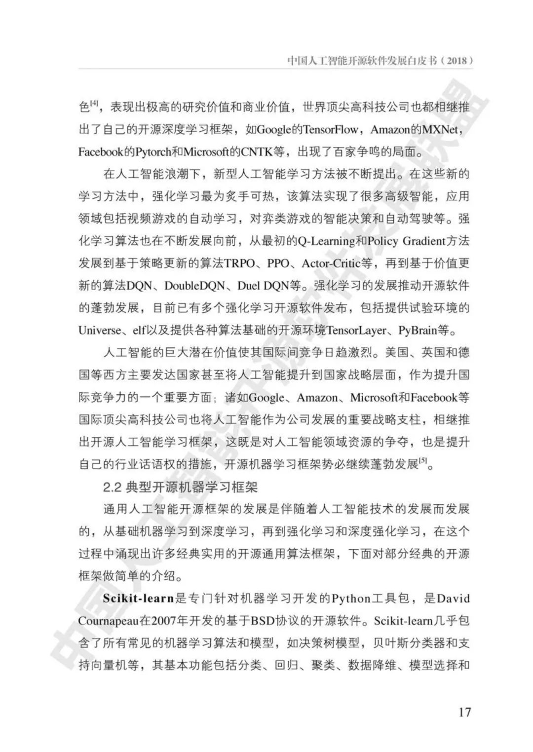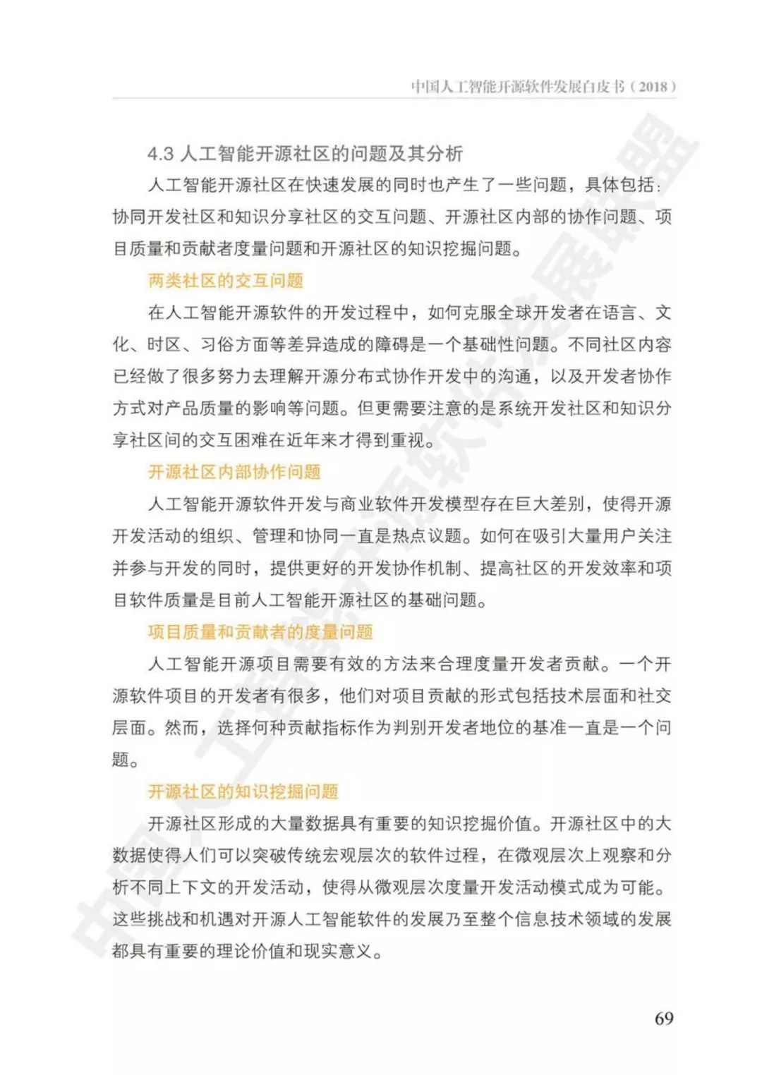 为推动人工智能开源软件快速而健康的发展,中国人工智能开源软件发展联盟召集中国电子技术标准化研究院、上海软件中心、北京大学、微众银行、蚂蚁金服、京东等企事业单位,研究梳理人工智能开源软件发展现状,分析人工智能开源软件生态,提出我国人工智能开源软件发展建议,并提炼我国人工智能开源软件应用案例,编撰形成了《中国人工智能开源软件发展白皮书(2018)》,已作为联盟的一项重要成果发布。