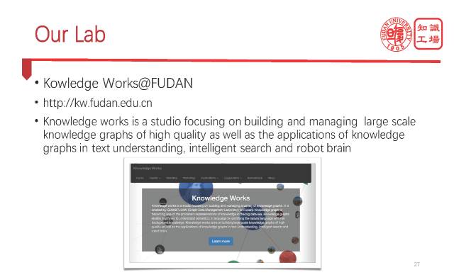 (以上是肖仰华教授报告的主要内容,以下关于知识工场实验室介绍以及实验室所做工作的内容,这里就不做详细描述。)