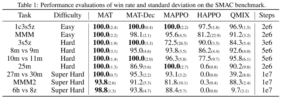 为了评估 MAT 是否符合预期,研究者在星际争霸 II 多智能体挑战(SMAC)基准(MAPPO 在之上具有优越性能)和多智能体 MuJoCo 基准上(HAPPO 在之上具有 SOTA 性能)对 MAT 进行了测试。