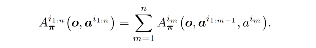 定理 1(多智能体优势分解):令 i_1:n 为智能体的排列。如下公式始终成立,无需进一步假设。