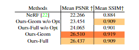 文章中的实验部分和NeRF模型进行对比,评价指标为峰值信噪比(PSNR)和结构相似性指数测量(SSIM)平均分。