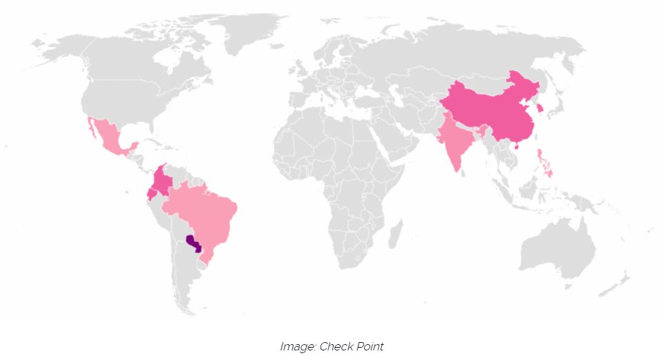 目前感染的地图显示,SpeakUp 受害者主要集中在亚洲和南美洲,其中以中国为主。