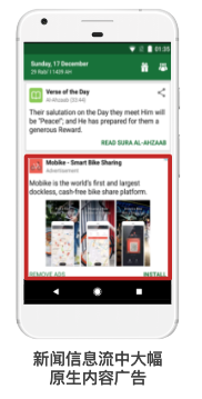 非游戏类应用常用原生广告达到自定义外观与应用内容融合的效果