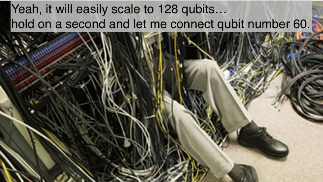 其实,说一千道一万,对物理学家来说,量子计算研究的终极灵魂拷问是: “When will quantum computers do science, rather than be science?”不管名字叫做量子计算机还是量子模拟机,我们的目标就是造出一个利用量子力学原理运行的新机器,它能成为物理学家、化学家和工程师在材料应用和药物设计方面的重要工具,应用于模拟复杂物理系统,量子化学,指导新材料设计,解决高温超导等物理问题,在特定模拟问题的求解能力上全面碾压经典的超级计算机。针对这一目标,包括诺贝尔物理学奖获得者杨振宁、Anthony Leggett在内的众多重要量子物理学家都认为,超冷原子由于其纯净的环境、各种丰富的相互作用、几十年来积累的各种精致的控制手段,有望在不久的将来在非平庸的量子模拟方面取得重大突破。如何实现一百万个量子比特的纠缠是一个有趣的问题!物理学家最善于把复杂的问题简单化,像那个“如何把一只大象放进冰箱”的经典问题,让我们分三步考虑: (1)放一个量子比特;(2)放100万个量子比特;(3)添加上量子纠缠。一、100万个量子比特:单原子阵列我们预计最简单最自然的量子比特是一个单原子(左图),搞定第一步。100万个量子比特,刚好是100*100*100的3维阵列。假设临近原子之间的距离是10微米,100万个量子比特正好是边长1毫米的立方体(右图),搞定第二步。我们具体看下怎么做出这样的原子立方呢?我们可以利用超冷原子光晶格产生的激光驻波,一个一个地囚禁单原子,一个萝卜一个坑规规矩矩地做成固定间隔的立方体形状。或者,以光镊作为定位工具,任性地把原子一个一个的排列成我们任意想要的间距和形状,比如3维的埃菲尔铁塔、莫比乌斯环、碳60,而且还可以实时动态变化(像南归的大雁那样,一会儿排成N形,一会儿排成B形),排出立方体更不在话下。图片来自Nature 561, 79–82 (2018)二、让100万个量子比特纠缠:激光操控原子前面两步我们有了100万个量子比特来存储量子态,接下来就是第三步,通过原子相互作用产生量子纠缠。用激光脉冲来控制原子是最方便的。相比于超导量子电路或者半导体量子点等固态系统中,100万个量子比特需要放置几百万根控制线【超导量子计算男神John Martinis曾经介(tu)绍(cao)他的大部分工作就是在解决如何布线这样的繁琐技术问题(见上图)】,单束激光可以通过动态编程,定向和聚焦于任意一个或一批原子上,对任意原子进行可控的量子操纵(下图)。例如,通过激光激发原子到里德堡态,可以把单原子间的相互作用打开,达到超过10个数量级的开关比。原则上,第三步产生纠缠可以很简单:一个基本的事实是,一个随机的量子态是最大纠缠态,因此只需要让原子进行充分的随机相互作用就行。图片来自https://news.mit.edu/2016/scientists-set-traps-atoms-single-particle-precision-1103让我们增大一点难度,来产生簇态纠缠,这种纠缠结构可以用来实现通用的量子计算。近期,中国科大科研人员在光晶格中取得重要进展,研究人员通过确定性制备超冷原子阵列和高精度量子门实现了1250对原子纠缠,是通往制备簇态纠缠的重要一步(欲知更多详情猛戳墨子沙龙漫画深度解读 “为了让你更完美,我必须冷酷到底——极度深寒量子模拟” )。图片来自http://quantum.ustc.edu.cn/web/node/852三、可扩展的量子纠缠:量子纠错假设一个量子操纵的可靠度是99.99%,那100万个量子比特都各操纵一下,整体的可靠性就是0.9999^1000000≈10^(-44),操纵就失败了。这是大规模量子纠缠和量子计算面临的最大挑战。解决这个问题的方法是对量子操纵进行纠错,让大规模量子操纵的错误不要持续累积。不过量子纠错很消耗资源,比如用100亿个高品质的物理量子比特来实现可容错的100万个逻辑量子比特。按照我们前面的排法,100亿个单原子量子比特阵列差不多是边长2.2厘米的立方体阵列,大小还是很迷你的。容错量子计算有个基本的门槛,量子操纵的可靠性需要大于某个阈值。目前,利用光镊控制的单原子量子比特可以实现大于99.7%保真度的初始化,大于99.6%保真度的单比特操纵,大于99.9%保真度的非破坏读取,通过里德堡态相互作用可以实现大于99.5%保真度的双比特纠缠门,这些基础指标都达到了二维表面码容错量子计算的阈值的基本要求。图片来自https://quantumarchitectureprinceton.github.io/二维表面码容错量子计算是目前最吸引人的可扩展量子计算设计(上图)。它只需要在平面上排布局域相互作用的量子比特,因此非常适合比如超导量子比特等固态芯片体系。不过这个设计有个大缺点,它需要辅助超大规模的量子态蒸馏才能实现通用的容错量子门,因此非常消耗资源。三维的原子量子比特阵列提供了新的机会:比如三维拓扑码可以直接实现通用的容错量子门,极大地节约了可扩展量子计算的资源开销。目前我们还很难预测未来哪个物理体系会率先实现100万个量子比特的高保真度纠缠。其中单原子阵列展示了潜在的竞争力:在高分辨显微镜头下,动态光镊排布三维原子构型,激光独立寻址和操控任意原子及其相互作用,三维容错编码机制高效地纠正量子错误,最终实现大规模量子计算。