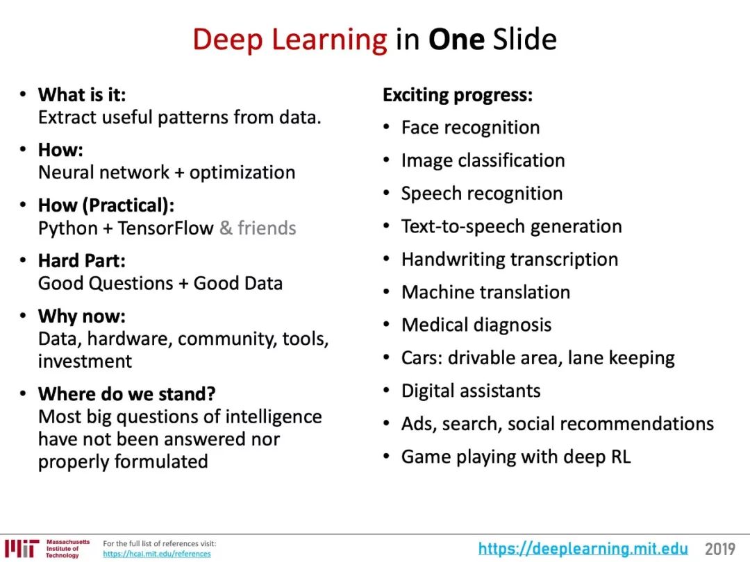 【免费资源】MIT《深度学习基础》第一课68分钟视频+69页PPT