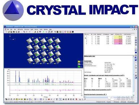 Diamond是Crystal Impact GbR公司开发研制的一款化学软件。Diamond可以画出晶体结构的球棍模型图、密堆积、线形图、热椭球图和立体图,也可以用于晶体局部结构的绘制、编 辑。其结果可以以BMP、GIF、JPGE等图片格式输出,同时也可以用复制粘贴命令将绘制的图片文件直接放入文档。该软件还可以对构建的晶体结构进行转 动、放大、缩小等操作,同时记录其运动过程,制成动画文件,在其他多媒体播放器中播放。