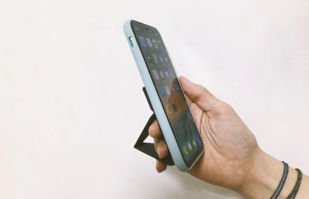 不过,我并没有像官方示意图那样将它贴在手机背后。毕竟手机后面有一块东西隆起还是挺影响手感的,于是我选择贴在了备用手机壳后面。出门时,佩戴日常的手机壳,不影响手感,在桌面前,换上备用手机壳,方便支撑。