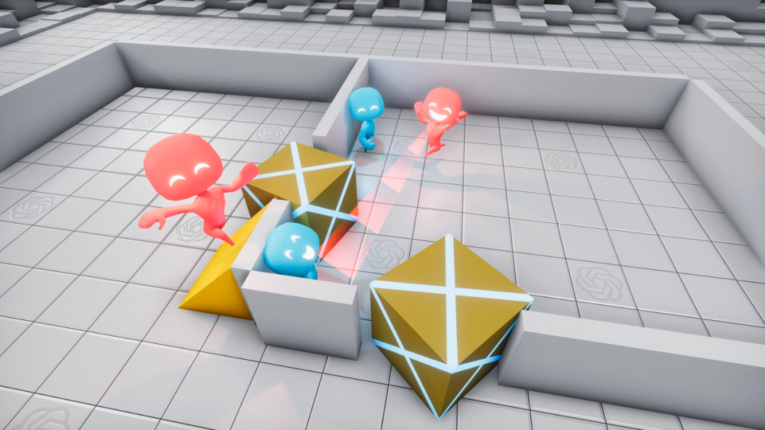 他们训练数字人玩捉迷藏,让隐藏者和搜寻者的大脑相互竞争。