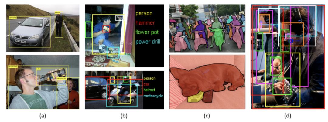 (a)VOC,(b)ILSVRC,(c)COCO,(d)Open Images