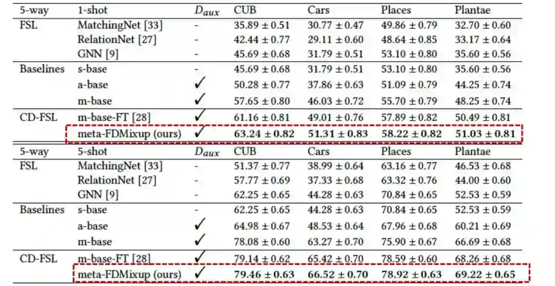 这里的第一种setting自然是最接近真实场景但同样也对算法最具挑战的任务,在这样1)可用样本少;2)存在domain gap的情况下,我们认为没有任何来自target的信息,仅仅通过源域数据来提升模型的生成泛化能力确实能带给模型的性能提升是非常有限的。