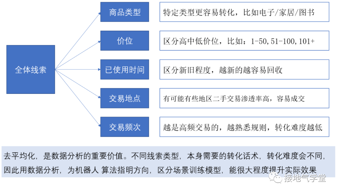 如果有些线索就是天然的转化好,有些怎么做都不行,那么就得考虑:天然好,是因为线索本身就容易转化,还是话务员服务很得心应手。到底机器人能不能承接住这些线索(如下图)。