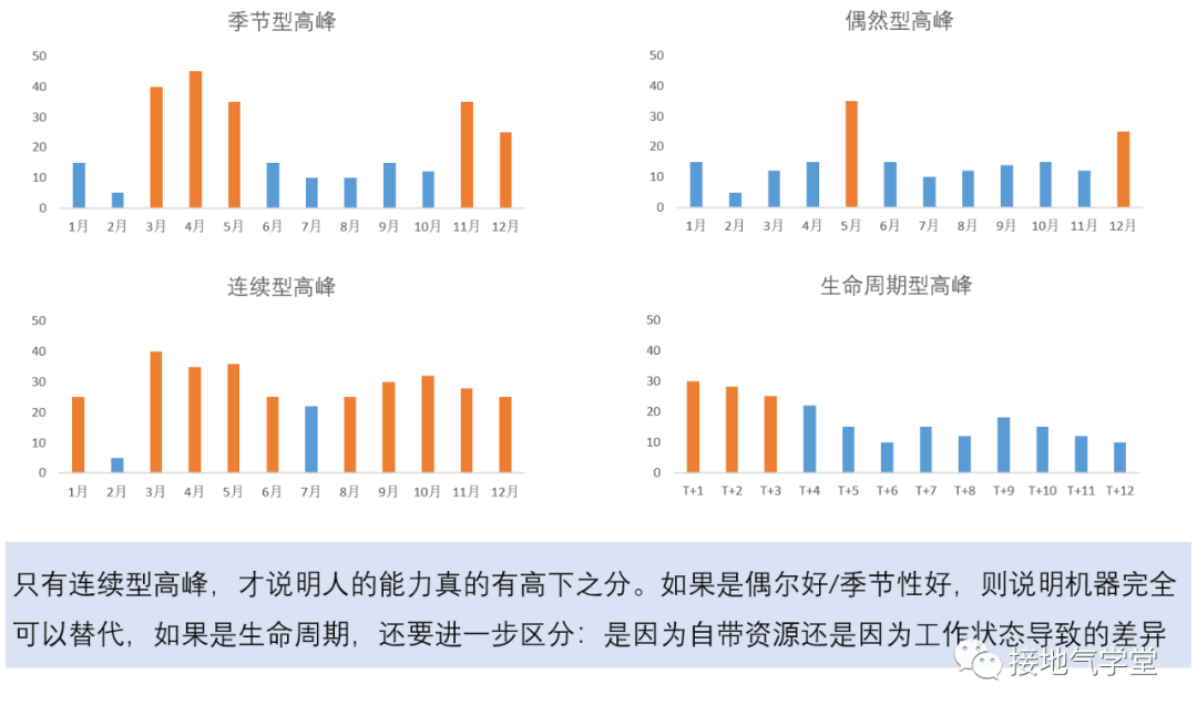 所以做分层的同时,还要加入行为分析,判断:话务员是持续好、一开始好、越来越好,还是真的随机好(如下图)。