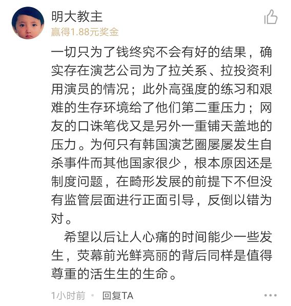 据报道,网络暴力可能是雪莉自杀最直接的原因。但是近年来韩国频频发生艺人自杀事件,其背后的原因远远不止承受网络暴力的压力一种。